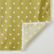 Pattern of white polka dots on a mustard yellow background. The dots are evenly spaced, creating a simple, vintage, playful aesthetic.