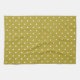 Pattern of white polka dots on a mustard yellow background. The dots are evenly spaced, creating a simple, vintage, playful aesthetic.