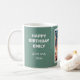 Elegant "Ocean Teal" customisable birthday mug from our muted elegance collection. ---- TIP: For optimal results, kindly utilise a 4x6 inches or 1200x1800px photo to ensure the best outcome ---- Customisable Birthday Card On A Mug - Capture memories in a unique way with our "Birthday Card" Mug. This special customisable mug features a personalised touch with 'Happy Birthday' wishes and a signature, all complemented by a photo framed in white against a teal / green background. Cherish the moment with a one-of-a-kind gift. Personalizable: change the name, age, photo and text. #custom-made #keepsake #happybirthday