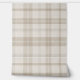 Muted Farmhouse Taupe Plaid w/ Linen Texture Wallpaper