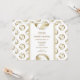 This custom volleyball birthday party invitation card for girls is fully customisable and features a pattern of muted gold and white volleyballs on the front and back - the volleyballs' gold panels are blended with a pretty floral kaleidoscopic pattern for a textured appearance that is artsy and girly - personalise with her celebration details on the front and back - by katz_d_zynes
