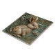 Muted Green Bunny Rabbit and Flowers Faux Relief Ceramic Tile