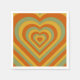 Retro heart burst design. Heart layers in muted colours, orange, red and green. Groovy retro heart gifts, home decor.