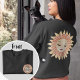 Such a beautiful and feminine sweatshirt! The front has a 'pocket design' with a simple sunshine and the words 'day dream.' You are able to change the words if you like, but it has to be a very short phrase to fit the space. You could actually remove the front graphics completely, as the real magic happens on the back! A stunning and peaceful sleeping sun in the muted pastel colors of peach and pink. I designed the graphic to look slightly distressed, and the sun has a contented grin. I love this design on the dark background of a black or dark gray sweatshirt, as it really pops! Especially the back design. Enjoy!