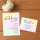 Wedding collection with muted pastel mint, yellow and purple background with olive green text