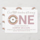 Boho rainbow first baby birthday invitation. This muted colour invitation in brown, purple, and white has the word "One" in large letters with two rainbows & a heart as the first letter of the word. Simply customise this invitation, add it to your cart, and happy birthday to your wonderful baby!