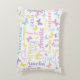 Cute little graphic outline butterflies personalised name pillow. This muted soft purple, blue, pink, green, yellow and coral text typographical pillow can also be customised with your own short name, currently reads Amelia. Other names and colours available or contact me for name requests. Original art and design by Sarah Trett for www.mylittleeden.com