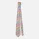 This men's tie is designed with an abstract diagonal stripe pattern in muted rainbow colours.