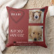 Honour a beloved pet with this heartfelt two‑sided memorial design. The front features a muted red background with two cherished photos stacked on the right, paired with a paw‑print heart outline holding your pet’s name in elegant white Playfair Display. “Miss you baby girl” appears in soft Dancing Script beside the lower photo, while “taken too soon by hemangiosarcoma” rests along the bottom in bold white text with a gentle pink halo for added depth.