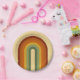 Retro rainbow design. Rainbow layers in muted colours, orange, red and green. Groovy retro rainbow gifts, home decor.
