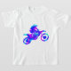 100% cotton so perfect for summer, It is a nicely designed t-shirt, the fabric is soft and the seams finished well, the body of the t shirt has no side seams. I bought a medium size for my two grandsons, aged 9 and 8 it will be slightly big on them but I would rather that than too small