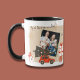 My 1st Christmas As A Dad Photo Winter Holidays Coffee Tea Mugs features your favourite photo surrounded by a baby holding a gift, a red car carrying a tree and a gift. Perfect for Christmas for a new father. Designed by ©Evco Holidays www.zazzle.com/store/evcoholidays