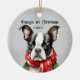 Cute Personalised Boston Terrier Ceramic Ornament to celebrate your Bostie's first Christmas or any year Christmas with the year. Boston Terrier First Christmas keepsake ornament.