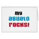 My Abuelo Rocks T-shirts, cards, stickers, tote bags, magnets, buttons, and other items with a black, blue, and red text design. These My Abuelo Rocks items are a great way to show your love for your special abuelo!