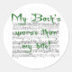 Every Bach-lover and/or church musician would be enchanted with this design which reads "My Bach's Worse than My Bite!". A Bach manuscript is the background for the words which are in green.