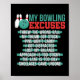 This Bowling design reads bowling excuses. Perfect for a bowling team and bowling player who loves telling the whole time funny bowling excuses to other bowling lovers because one has missed the strike.