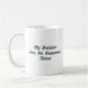 Well crafted white coffer mug reading MY BROTHER HAS AN AWESOME SISTER in bold two tone letters.