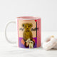 This teddy bear mug has a sweet little teddy bear holding hands with his best friend, his buddy.