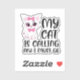 Answer the call of feline love with this 'My Cat Is Calling and I Must Go' sticker! Featuring an elegant white cat adorned with a soft pink ribbon, this charming artwork is perfect for cat enthusiasts who know the undeniable pull of their beloved pets. A delightful gift for cat lovers, this design adds a touch of sophistication and humour to your day.