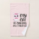 Answer the call of feline love with this 'My Cat Is Calling and I Must Go' bath towel! Featuring an elegant white cat adorned with a soft pink ribbon, this charming artwork is perfect for cat enthusiasts who know the undeniable pull of their beloved pets. A delightful gift for cat lovers, this design adds a touch of sophistication and humour to your day.