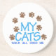 I'm not sure how much moisture these will soak up, haven't had a chance to try them out, but they look good and I like the cork backing. The printing is fine ~ and really looks cool with an artisan's hand made "Hurricane Martini" glass sitting on top of my painting (on the coaster) in my studio.