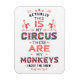 Retro Circus Style Poster in red and navy blue on white with stars, banners and design accents features words in state fair festival style typography art, "Actually, this IS My Circus these ARE my Monkeys. Enjoy The Show."