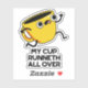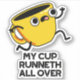 My Cup Runneth All Over Funny Bible Pun features a cute yellow cup running. Perfect pun gift for family and friends who love cute bible puns.