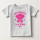 My Daddy is a Pilot Heather Grey Baby T-shirt. Features a Pilot's hat and Aviator glasses with a rounded, friendly font. The design is in a deep fuchsia pink with a tonal distressed texture in the elements. Personalise the back!