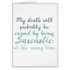 My death will be caused by sarcasm funny greeting