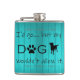 A perfect flask for those who prefer the company of dogs and the comforts of home! This flask design features text that says "I'd go...but my dog wouldn't allow it." with a paw print and dog silhouette embellishment against a teal wooden background. Additional gift items available with this design as well.