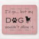 Add a funny touch to your home office or workspace with a My Dog Wouldn't Allow It Mouse Pad. Mouse pad design features a pink wooden background with the saying "I'd go... but my dog wouldn't allow it" with a paw print and canine silhouette embellishments. Additional gift items available with this design as well.