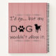 A perfect notebook for those who prefer the company of dog and the comforts of home! This notebook design features text that says "I'd go...but my dog wouldn't allow it." with a paw print and dog silhouette embellishment against a pink wooden background. Additional gift items available with this design as well.