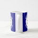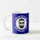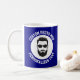 My Face on a custom Mug, 11 oz., 3.2" diameter x 3.8" high, with NAVY BLUE #000080 background and COLLEGE text font. (A combo mug has black, hunter green, maroon, navy blue or yellow handle + inside). Custom photo and personalized text template with two individually customized design areas (see store for more background colors, font styles, and alternative template options).