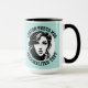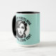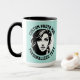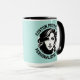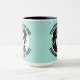 My Face on a Large custom Combo Mug, 15 oz., 3.4" diameter x 4.5" high, with TURQUOISE GREEN #AFE4DE background and COLLEGE text font. (A combo mug has black, hunter green, maroon, navy blue or yellow handle + inside). Custom photo and personalized text template with two individually customized design areas (see store for more background colors, font styles, and alternative template options).