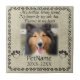 My faithful, loving friend, No longer by my side, but... forever in my heart. With a black decorative swirl frame and paw prints shaped like hearts with a brown / beige burlap background. Pet poem that goes for dogs, cats, or any pets with paws. Pay tribute to a loved pet with these personalised memorial gifts keepsakes or offer your condolences with personalised sympathy gifts from Healing Tears to honour a special pet in your life. Add your image and change the text (Name and dates) to your own.