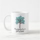 This mug features a genealogy design with a tree with blue leaves and the caption "My family tree is full of nuts".