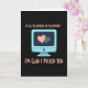 This charming card features a retro computer screen in soft light blue, centered against a deep black background. On the screen, two glowing hearts appear side by side—one bright coral and one gentle gray—suggesting a special connection. Above the screen, bold coral lettering reads, “OF ALL THE WEIRDOS ON THE INTERNET,” adding humor and honesty. Below, the message continues with “I’M GLAD I PICKED YOU,” delivering warmth and affection. The contrast between the dark background and pastel colors makes the screen and hearts glow with character. The nostalgic computer design paired with modern humor creates a thoughtful celebration of finding love in unexpected places, making this card a sweet and meaningful choice for Valentine’s Day. ❤️