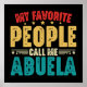 My Favourite People call me Abuela, funny vintage apparel for women. Awesome graphic design for Latina Spanish grandma, it makes a cute gifts idea in mother's day or birthday. Coolest outfits for grandmothers who love jokes and humourous sayings. Funny Abuela favourite people outfit makes cute present from grandkids for mother's day and birthday. Vintage apparel featuring a quote design to celebrate grandma. Perfect for Latina Spanish grandmother from daughter, son, granddaughter, and grandson.