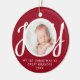 This keepsake "My First Christmas As Great Grandpa" photo ornament is decorated with the word JOY in white stylish script typography on a red background. Easily customizable, with your baby's photo.