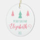 Celebrate your baby's first Christmas with our personalised ornament, designed to capture this precious milestone. One side features the phrase "My First Christmas," customisable with your baby's name and the year, accompanied by charming pastel Christmas trees. The other side showcases your favourite photo of your little one, creating a keepsake that will be cherished for years to come. This ornament is perfect for new parents, grandparents, or as a thoughtful gift for friends with newborns. Make this holiday season unforgettable with a unique and personal touch.