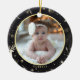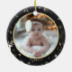 This unique My First Christmas Cute Modern Baby Photo Ceramic Ornament is a minimalistic and personalised keepsake to celebrate your baby's exciting milestone. Crafted with utmost attention to detail, this custom holiday ornament features a luxurious black and gold design that adds a touch of sophistication to your Christmas tree decorations. Whether you're a parent, grandparent, or a friend looking for the ideal Christmas gift, this personalised Christmas ornament is sure to make this Xmas extra special. Add a touch of elegance to your holiday decor and make this season unforgettable with this elegant and modern festive baby photo ornament!