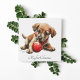watercolor painting of a cute puppy playing with a christmas ball. Customisable, change the text to your liking