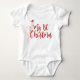 This custom My First Christmas one-piece bodysuit is perfect for a baby girl. Design features a cute watercolor deer with holiday flowers and a modern calligraphy script font.