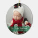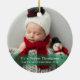 My First Christmas Green Stripe Custom Baby Photo Ceramic Ornament