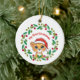 This adorable ornament features a cute cheetah encircled by a festive Christmas wreath adorned with holy berries. Perfect for a baby’s first Christmas decoration, while the cute design brings a joyful holiday spirit to the little one's celebration.