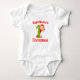 "Christmas Joy, Personalised for Your Little One: A cute Santi, with a blue snowy background, and your baby's name make this baby bodysuit the perfect outfit for a magical first Christmas."