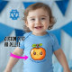 A charming baby bodysuit in a soft, pastel hue, designed to celebrate a little one's first Rosh Hashanah, features an adorable kawaii-style red apple at its centre. The apple, with its round, chubby shape, shiny red skin, and a sweet smile complete with sparkling eyes and rosy cheeks, exudes pure joy. Below the image, the bodysuit showcases a customisable caption in a playful, rounded font, reading "It's my first Rosh Hashanah!"—a delightful and personal touch to commemorate this special occasion.