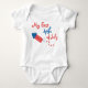 "My first 4th of July" text is optional. Change the text using the template form. The customise feature can be used to change the font and layout of this bodysuit!