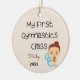 Celebrate your family milestones with this cute my first gymnastics class ornament personalized with your child's name and the year.