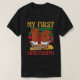 This powerful and symbolic design features two clenched fists breaking free from shackles and chains, set against a background with distressed stripes in the colours of the Pan-African flag (red, black, and green), along with yellow accents. The text "MY FIRST" appears at the top and "JUNETEENTH" at the bottom in a bold, vintage-style font. This design commemorates the historical significance of Juneteenth, celebrating freedom and the end of slavery in the United States. It is a meaningful way to honour this important day and the journey towards liberation.